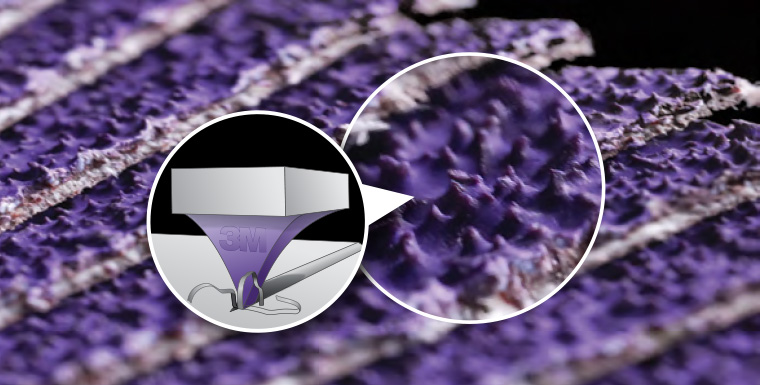 De 3M™ Cubitron™ 3 schuurmiddelen vormen een duidelijke stap vooruit ten opzichte van de Cubitron™ 2 serie. Deze nieuwe lijn maakt gebruik van een geavanceerde versie van 3M’s Precision-Shaped Grain: een keramische, driehoekige korrel die opnieuw is ontworpen met baanbrekende verbeteringen in zowel vorm als moleculaire bindingstechnologie.